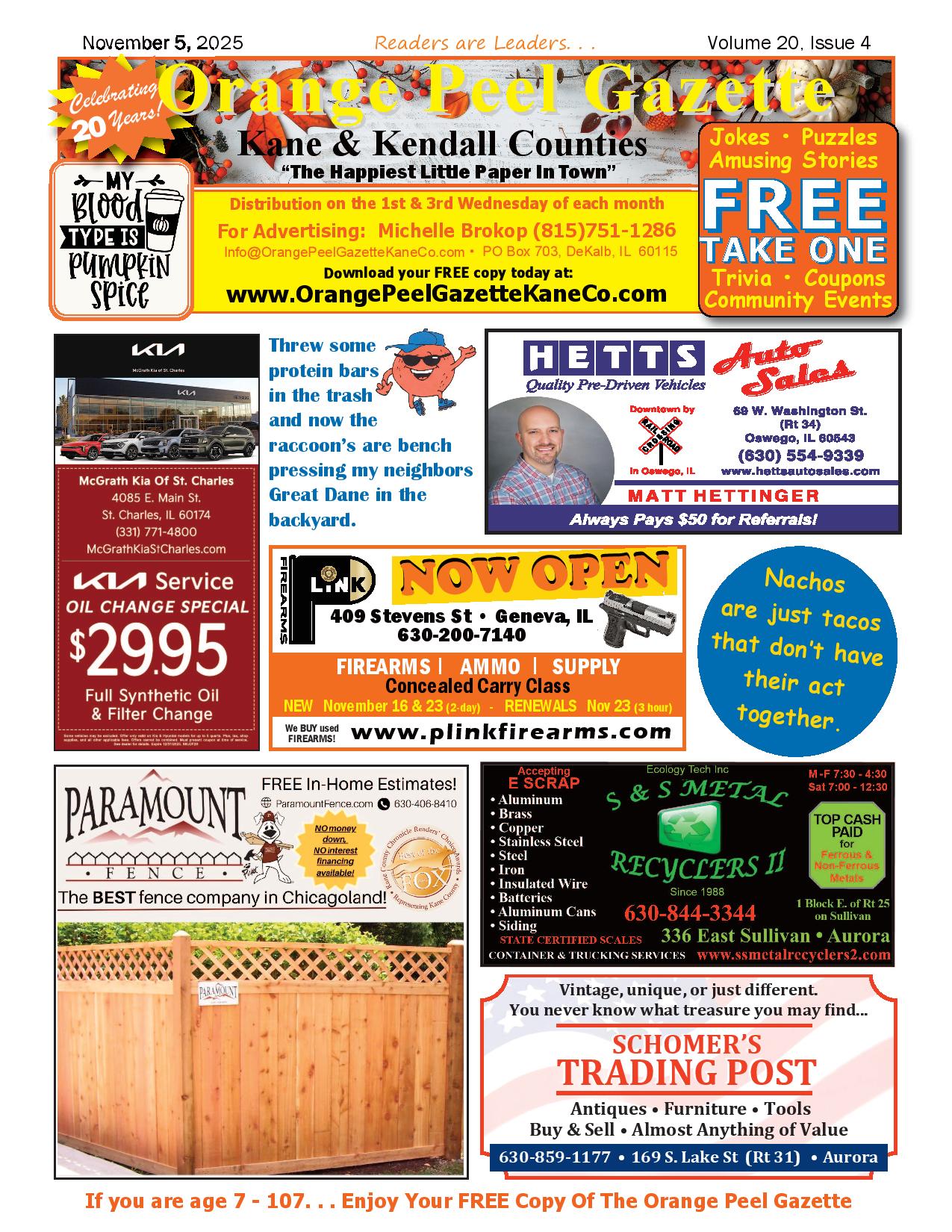 November 5, 2025 By admin on November 5, 2025 in Uncategorized At this point; my blood type is pumpkin spice… Enjoy your new issue of the Orange Peel Gazette! http://www.orangepeelgazettekaneco.com/wp-content/uploads/2025/11/OPG-11-5-25.pdf